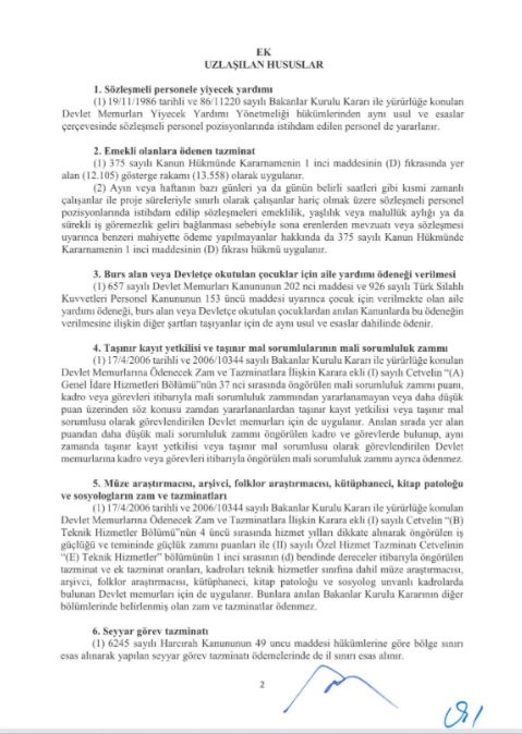 Memur-Sen Genel Başkanı Ali Yalçın Toplu Sözleşme görüşmelerinde uzlaşılan konuları ile toplu sözleşme tutanağını paylaştı.